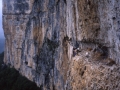 L’escalade y est très variée avec entre-autres passages, la remontée au dessus de la vire médiane d’un boyau vertical avec une grande fenêtre à mi-hauteur. L’ambiance est particulièrement gazeuse.