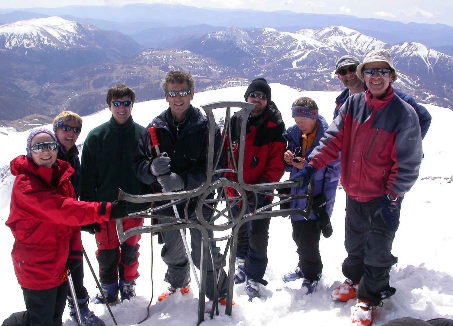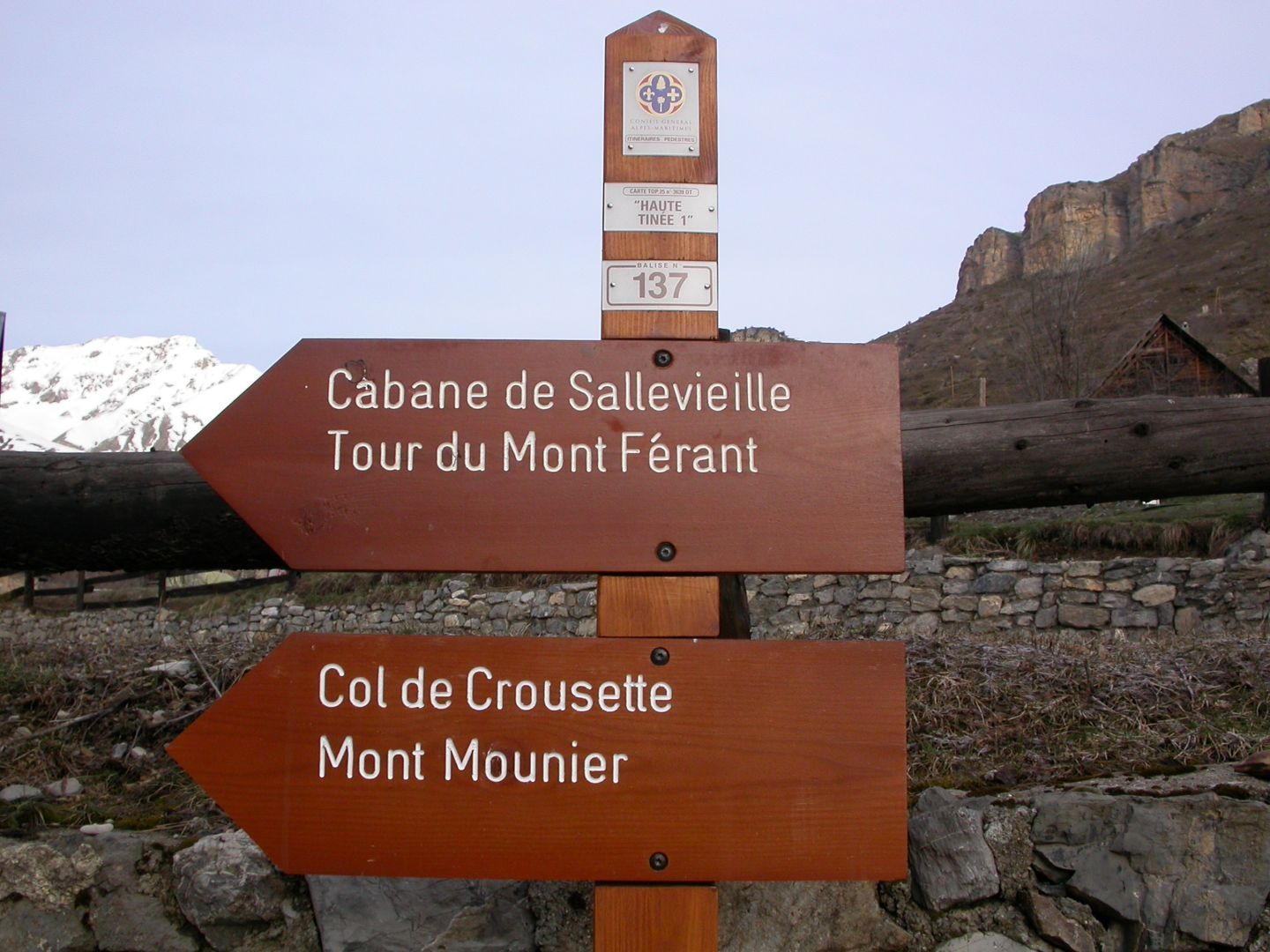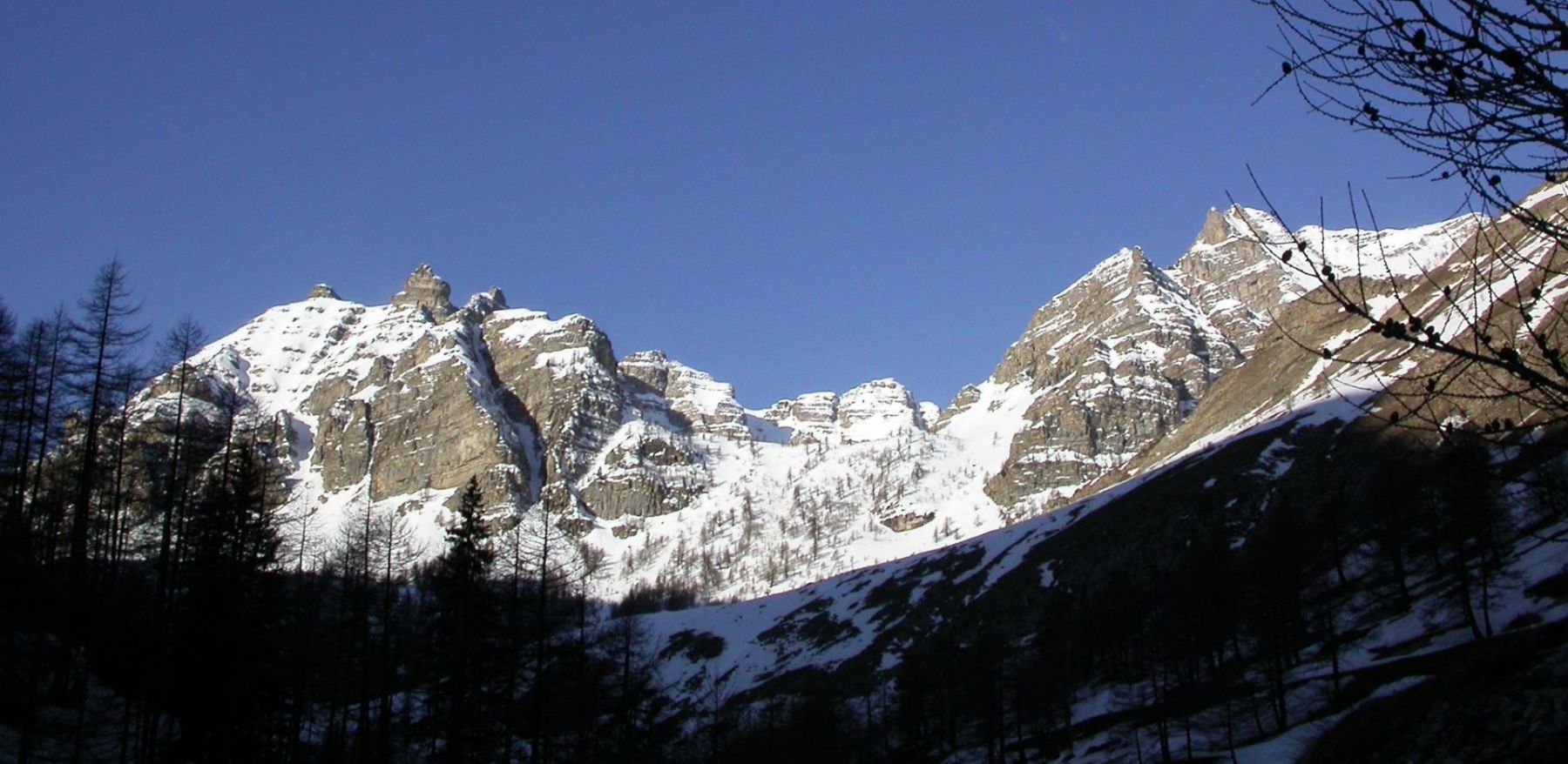 - Dimanche : le Mont Mounier depuis Roya (1499m). Remontée du vallon de Sallevieille (ça ne s’invente pas !) pour rejoindre l’épaule au pied de l’arête nord . Quelques pas d’escalades aériens mènent à la très belle croix sommitale (2817m). Dénivelé de montée : 1400 m. Retour par le même itinéraire.