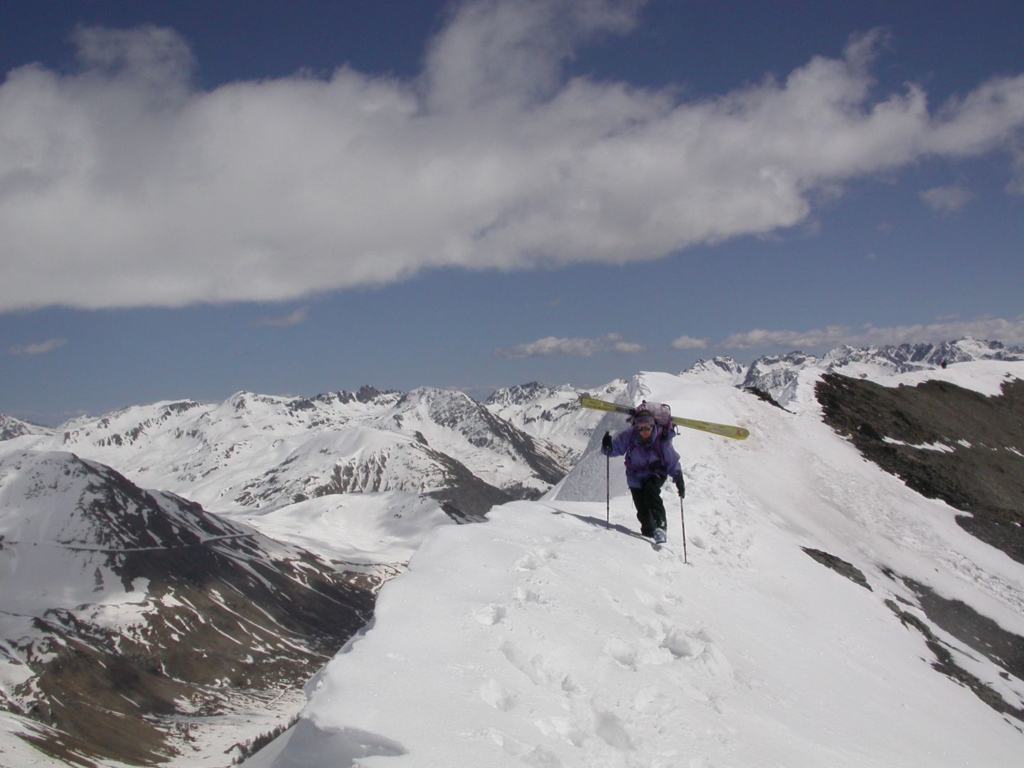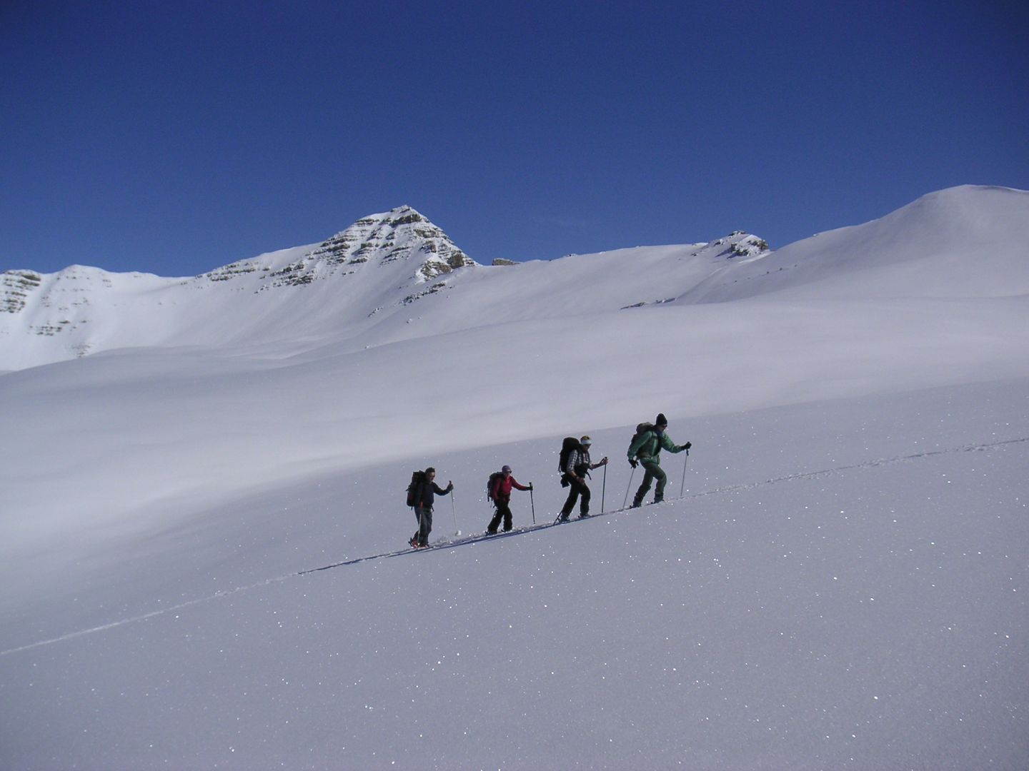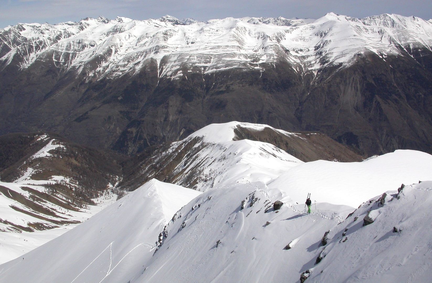 - Jeudi : l’Alpet (2568m) par la crête du Content, puis la Baisse de Marseille (2518m) par encore une longue et belle arête et enfin, le Bec de Marseille (2743m), par une large face bien raide en neige très dure… Retour à St Dalmas de Selvage par le même itinéraire. Dénivelé pour l’Alpet : 1100m. Dénivelé pour le Bec de Marseille : 1500m