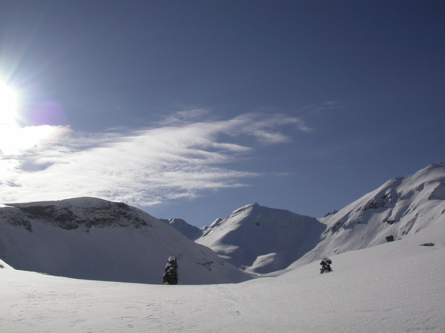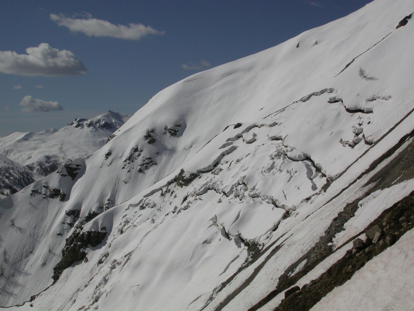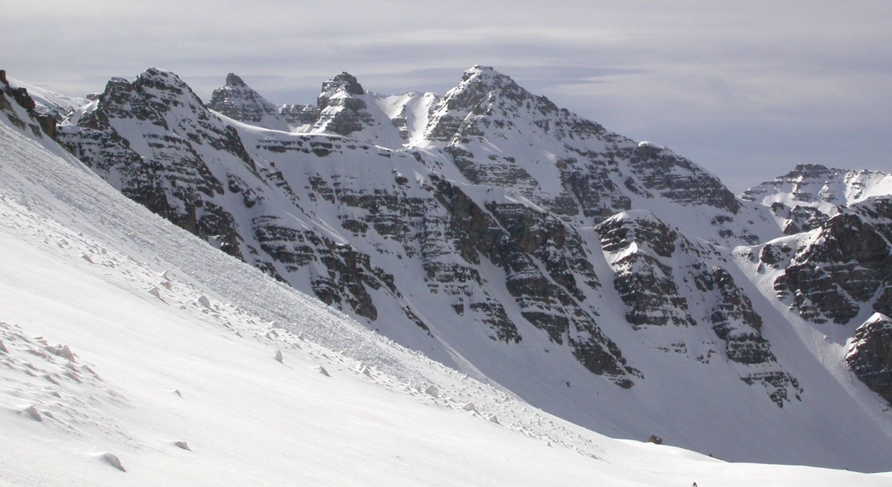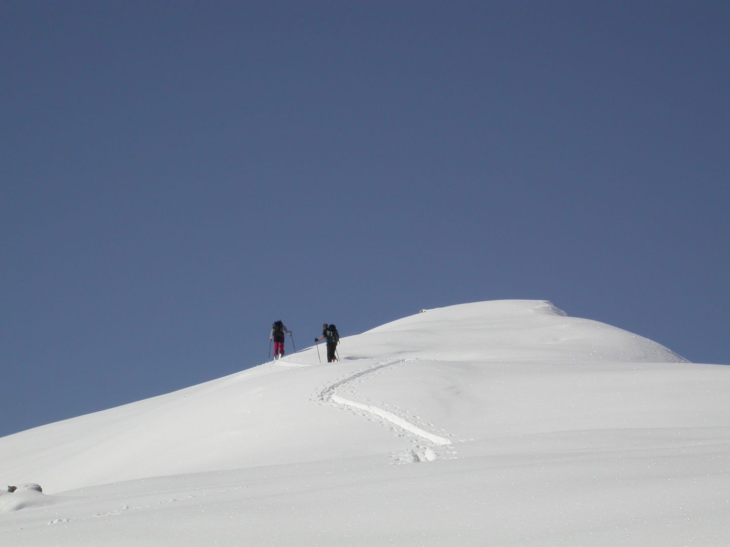 - Jeudi : l’Alpet (2568m) par la crête du Content, puis la Baisse de Marseille (2518m) par encore une longue et belle arête et enfin, le Bec de Marseille (2743m), par une large face bien raide en neige très dure… Retour à St Dalmas de Selvage par le même itinéraire. Dénivelé pour l’Alpet : 1100m. Dénivelé pour le Bec de Marseille : 1500m