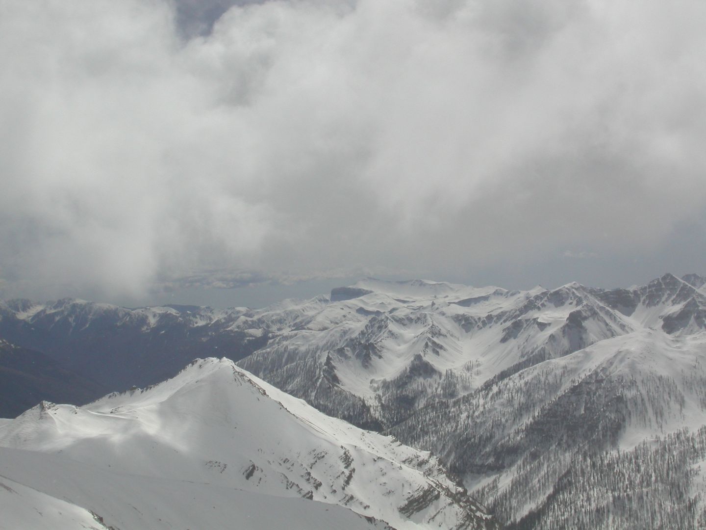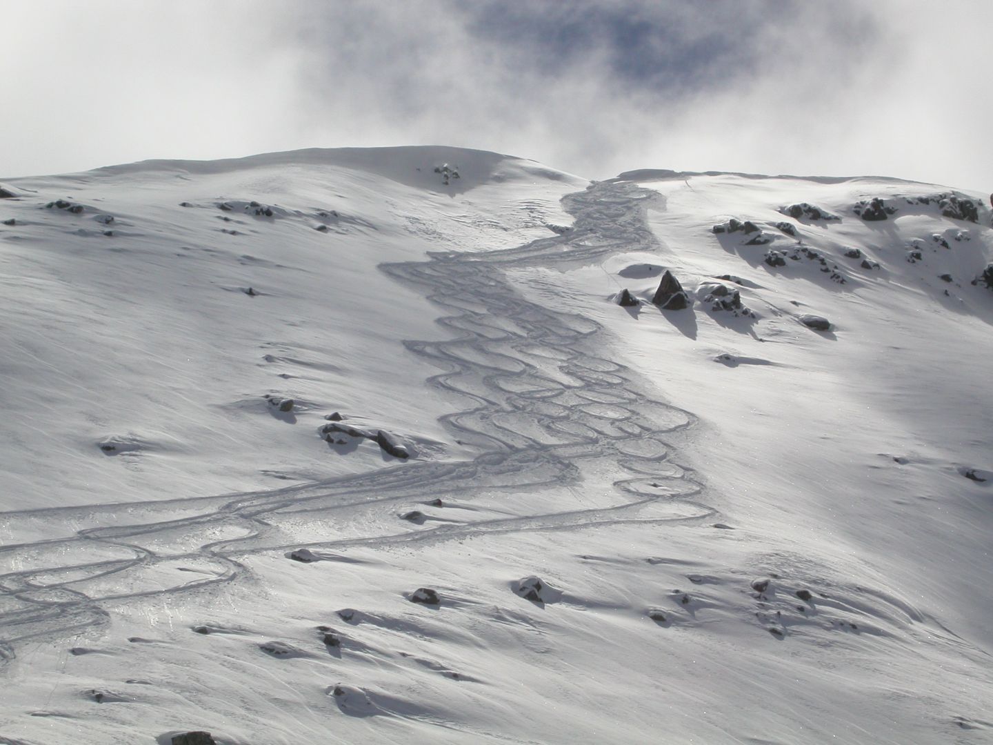 - Samedi : nous projetions la cime de Pal (2818m). Par le vallon de l’Estrop on rejoint le terrible Entonnoir… puis la cabane de l’Estrop (2374m). On passe sous le col de Gialorgues pour rejoindre la Baisse de la Boulière (2629m). Mais la neige tombée pendant la nuit se transforme vite et la prudence nous fait renoncer à la Cime de Pal. Nous rejoignons la Tête de la Boulière (2708m) par une fine arête digne de Samivel. Retour par le même itinéraire. Dénivelé : 1100m