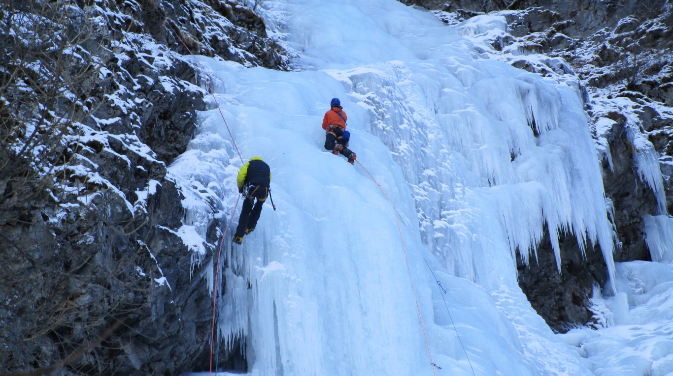Cotations : IV / IV+ voire V à la sortie de la colonne, selon les conditions.