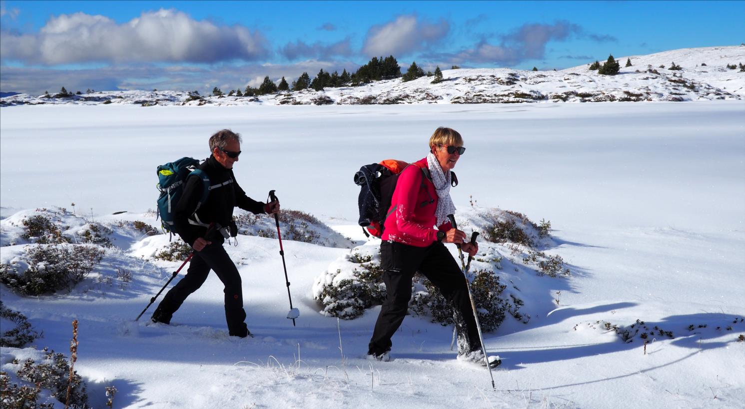 Une courte fenêtre météo, entre deux passages perturbés, nous a permis de monter au Lac Fourchu depuis le Village d’Ornon sous un beau soleil et les pieds dans la neige.