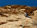 Par peur des résurgences, on a opté pour la paroi principale et l’une de ses voies historiques, Arcturus, une voie Fara rééquipée dans les années 90. Cette voie se déroule sur un caillou magnifique et dans une belle ambiance.