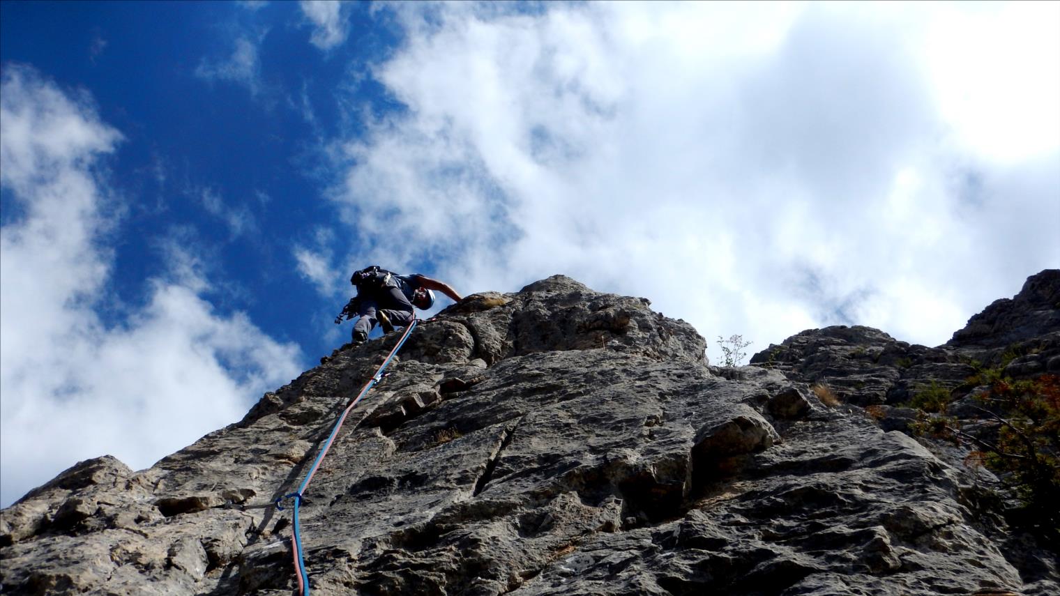 Cela faisait quelques années que je n’étais pas venu grimper au Piéroux. Aussi quel plaisir de refaire « Supers Goujats » avec deux petits jeunes, Christophe et Jérôme. Merci les copains !