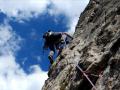 Super Goujats est un itinéraire qui a été ouvert en 1981 par François Diaferia et Gérard Vionnet-Fuasset. Le rocher y est la plupart du temps excellent. La voie se déroule sur 250m dans un niveau de difficulté 5c/6a. A froid, la 1ère longueur réveille ! Elle est magnifique, longue et soutenue. La longueur suivante est plus simple mais l’équipement y est très aéré. Quelques blocs coincés se prêtent bien à la protection sur sangle. On peut aussi poser des friends, plutôt de petite taille. La suite est plus classique, entrecoupée par deux courtes sections herbeuses. A noter une 6ème longueur délicate. La 3ème plaquette située au dessus de la fissure n’est pas simple à clipper, mais indispensable pour protéger la suite qui n’est pas forcément évidente à déchiffrer !