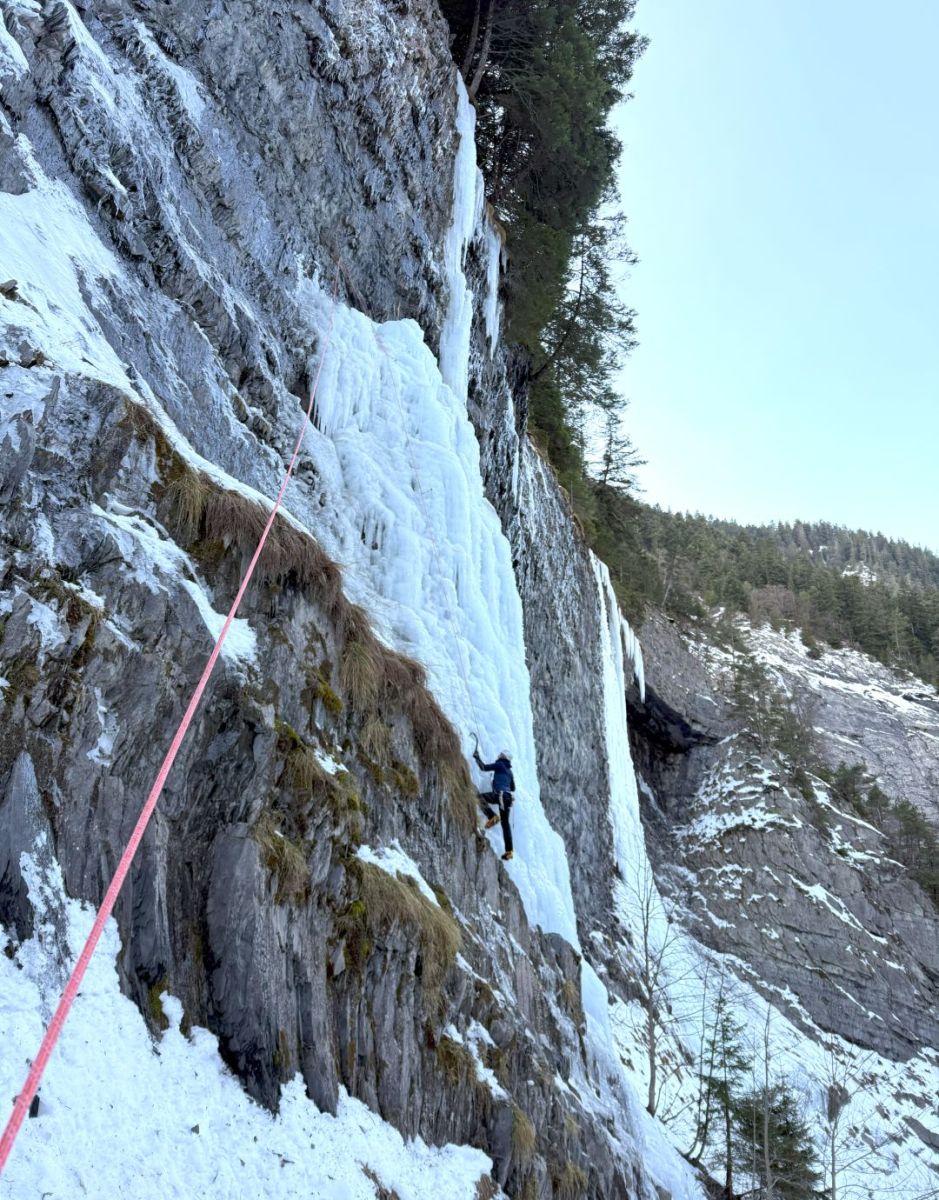 Après une mise en jambes à l’abri des glaçons dans la partie basse de Phisalie, nous nous sommes régalés dans le magnifique mur de “Miroir, mon beau miroir”.