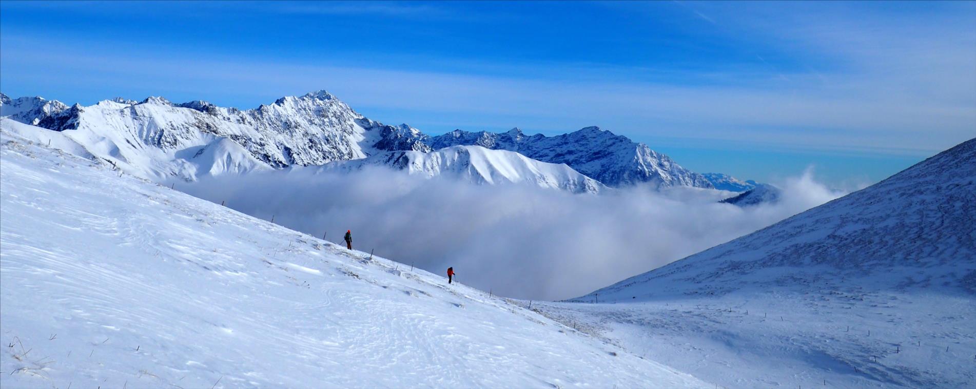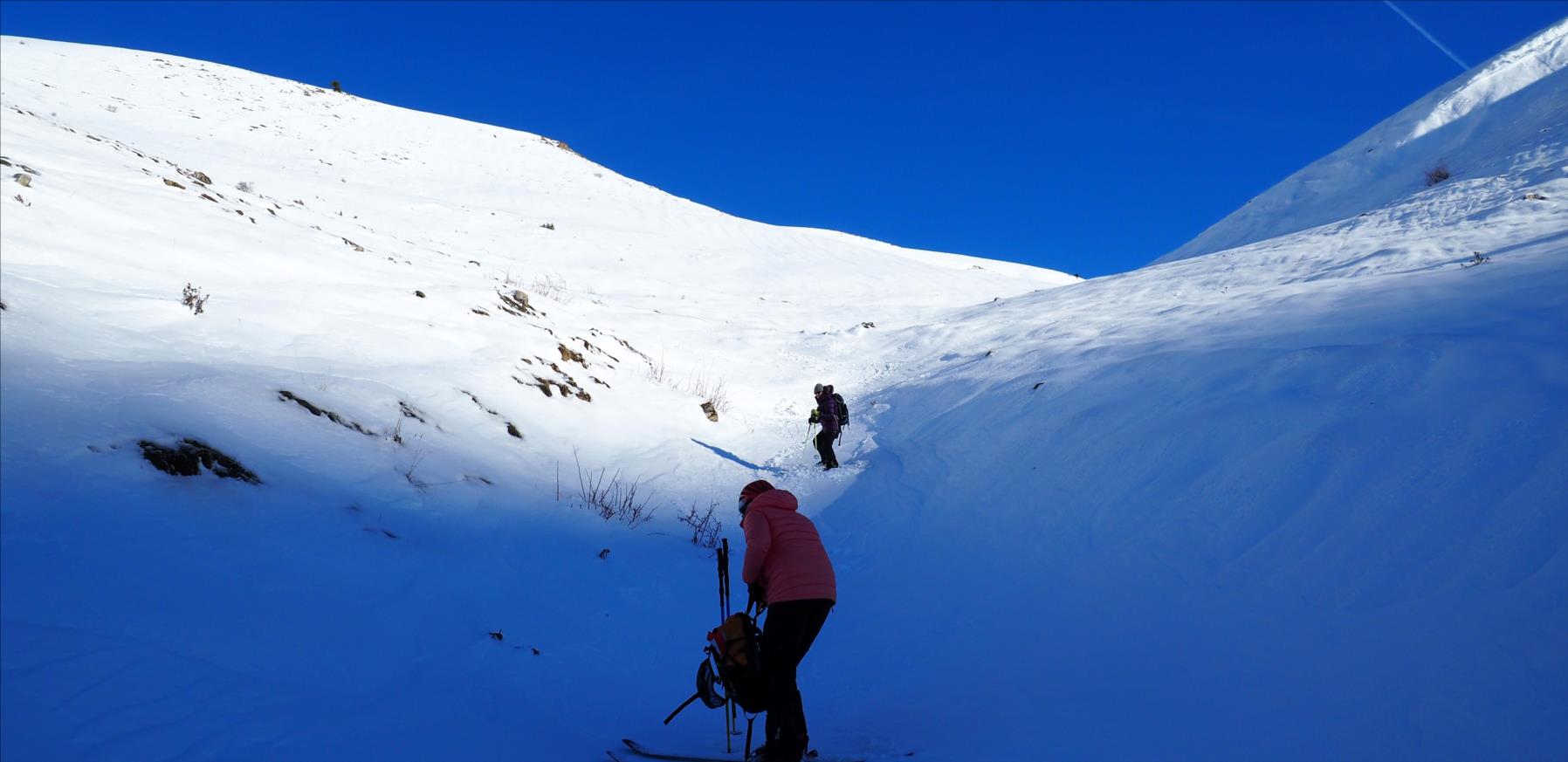 Elle est sans difficulté et sans risque par fort enneigement à l’exception de la montée au Colombier depuis le Clos de l’Alpe dont la pente est supérieure à 30 degrés tout du long ! Mais aujourd’hui pas de risque !