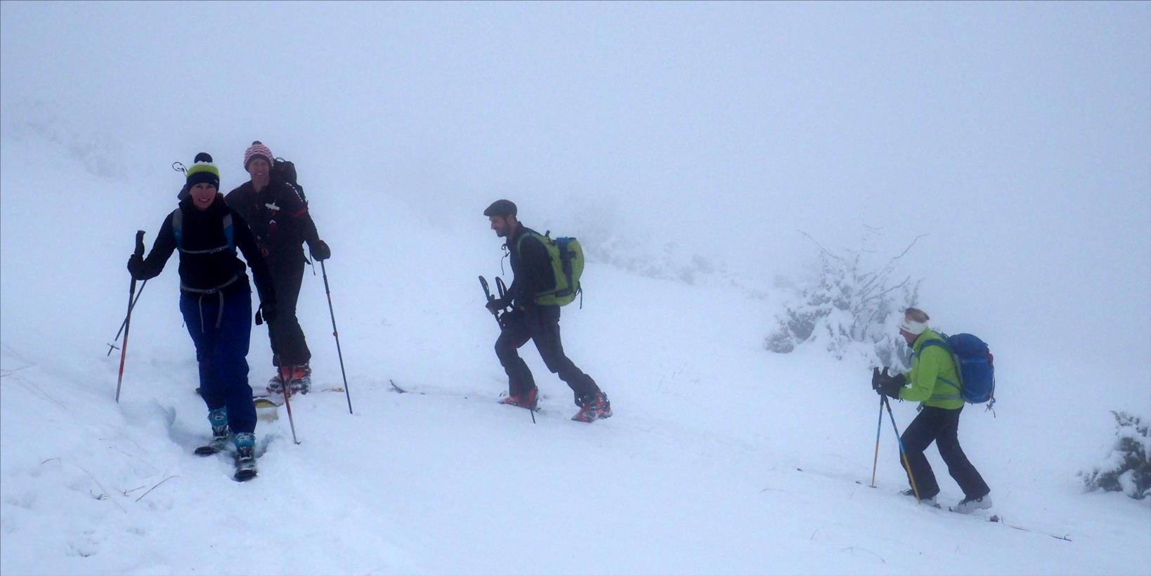 Nous étions 5 dont 2 télémarkers (« Talon libre ») experts et une skieuse tout aussi talentueuse. Les 2 autres ont survécu…