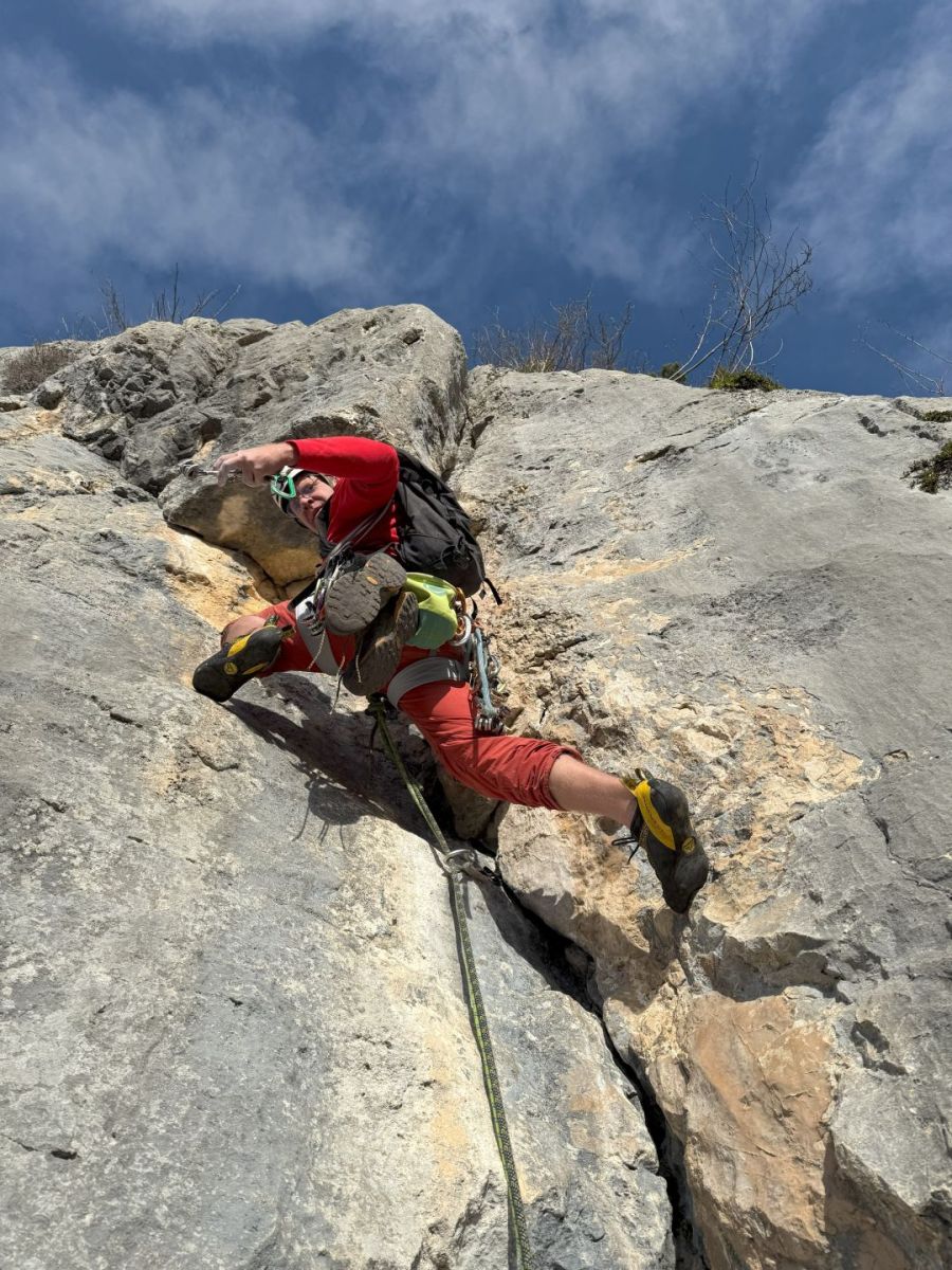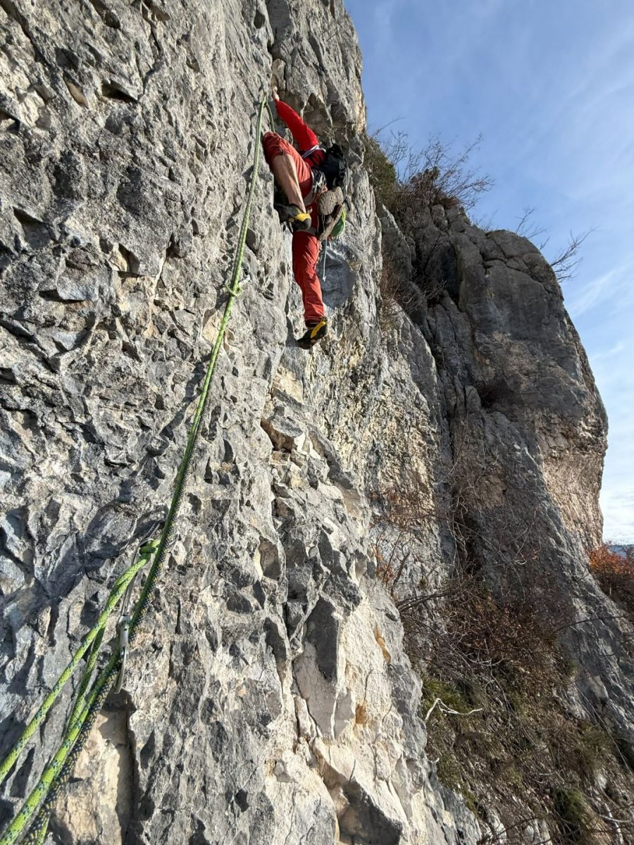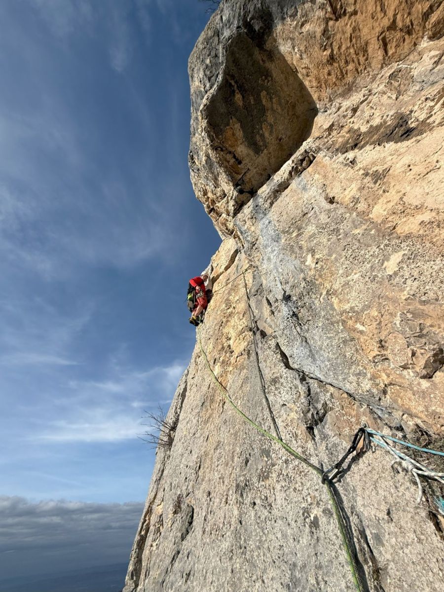 J’ai beaucoup aimé cette nouvelle voie de quatre longueurs au beau rocher tout neuf, à l’équipement rapproché et aux deux longueurs en 5b/5b+ que j’ai pu parcourir en tête “Tranquilou bilou” !