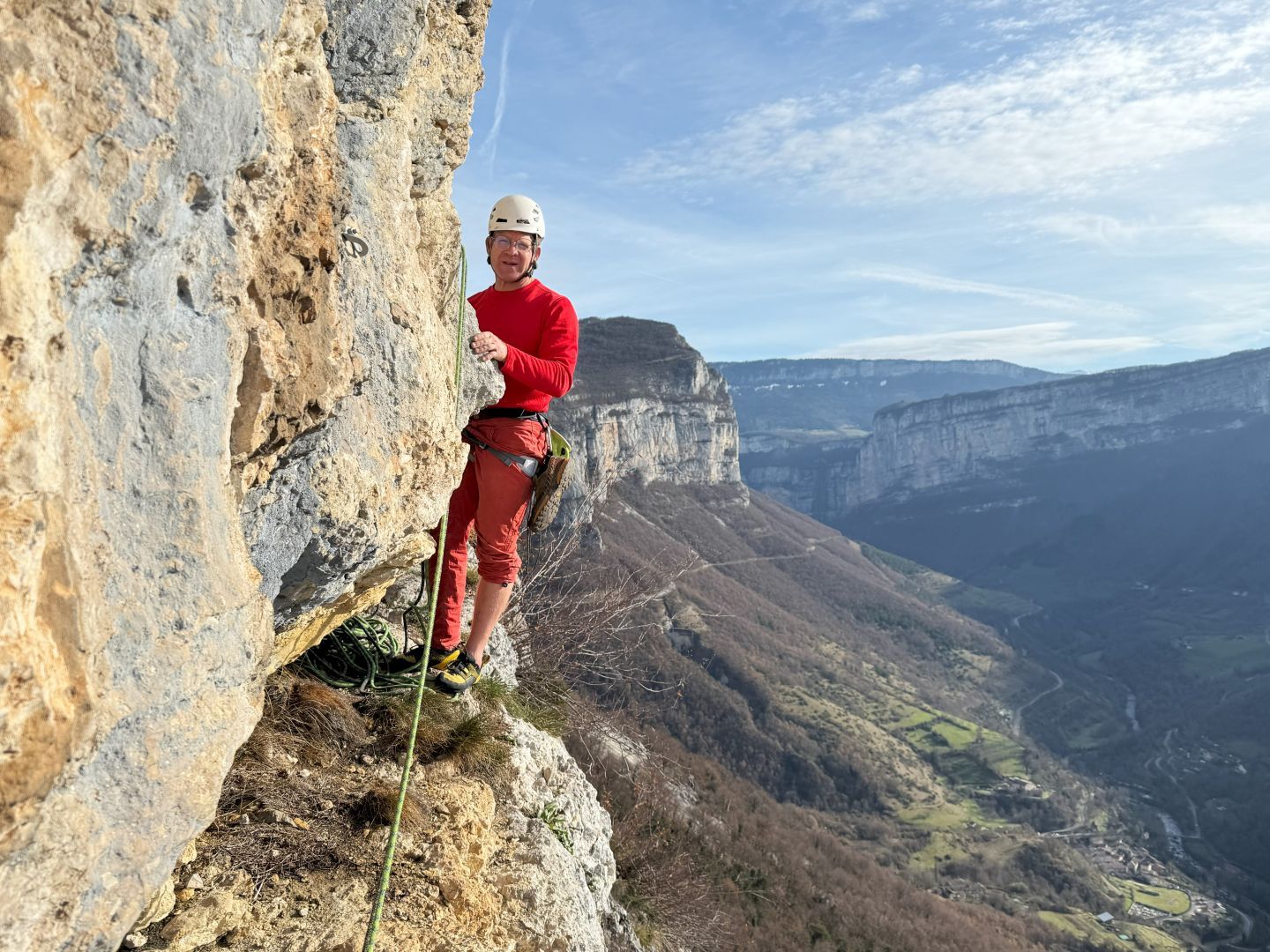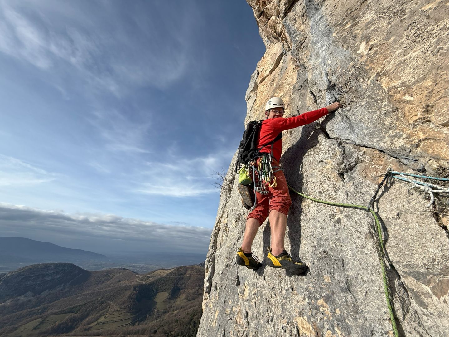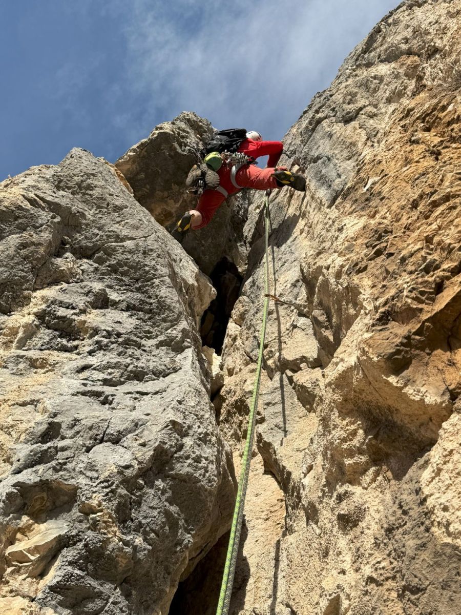 J’ai beaucoup aimé cette nouvelle voie de quatre longueurs au beau rocher tout neuf, à l’équipement rapproché et aux deux longueurs en 5b/5b+ que j’ai pu parcourir en tête “Tranquilou bilou” !