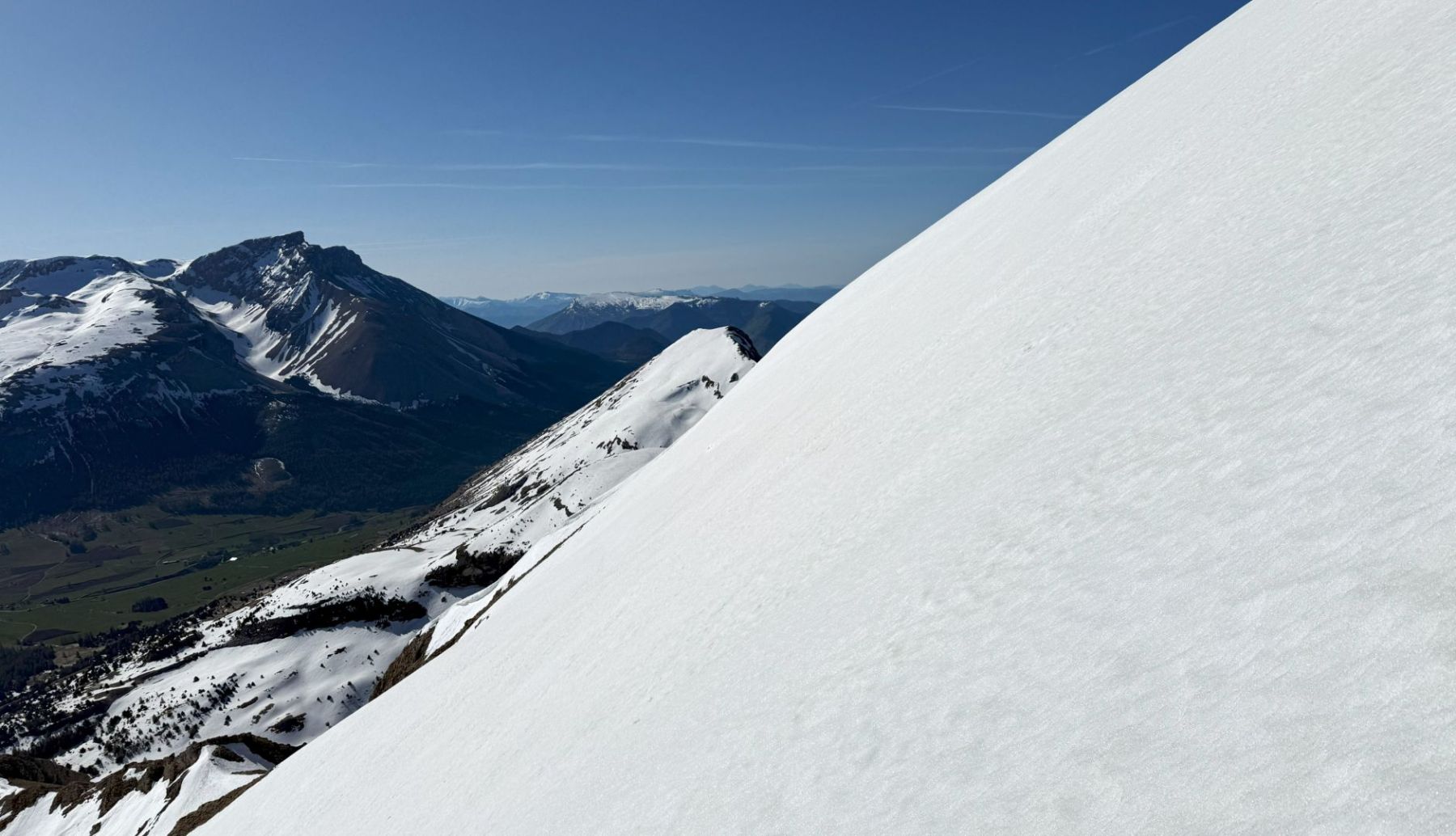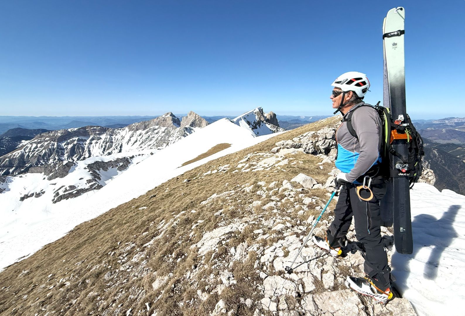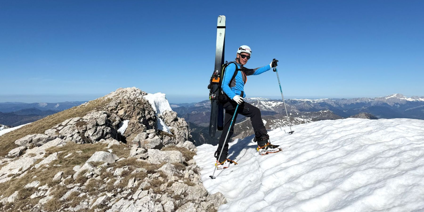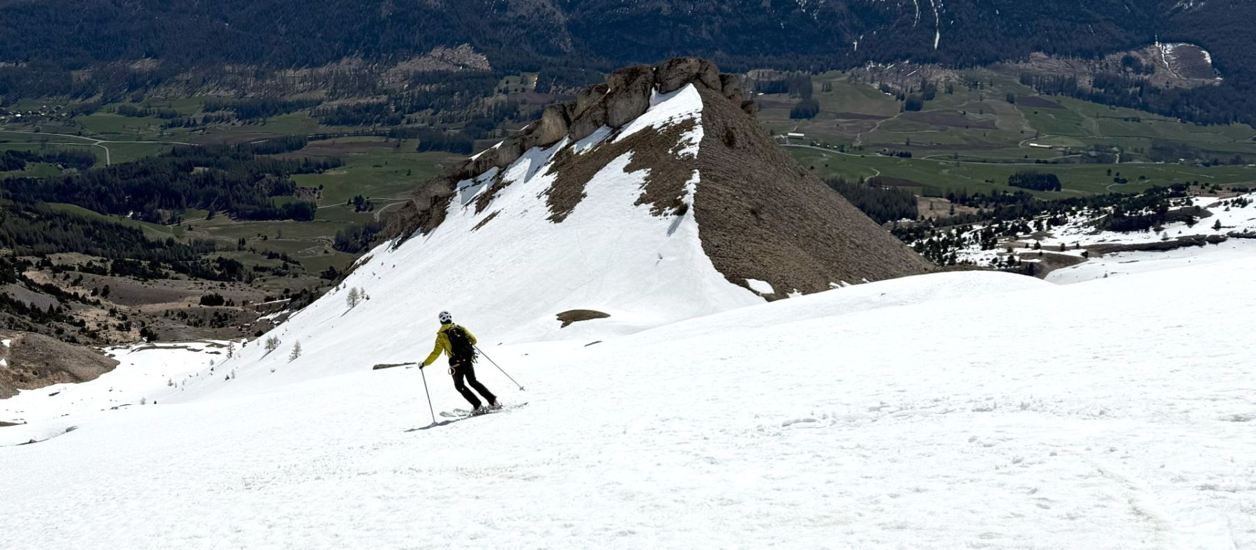 Comme souvent dans ce fabuleux petit Massif du Dévoluy, l’arrivée au sommet est magique avec la présence toute proche de rocs, de pics et de pentes qui, ici, plongent littéralement sur la région du Trièves !