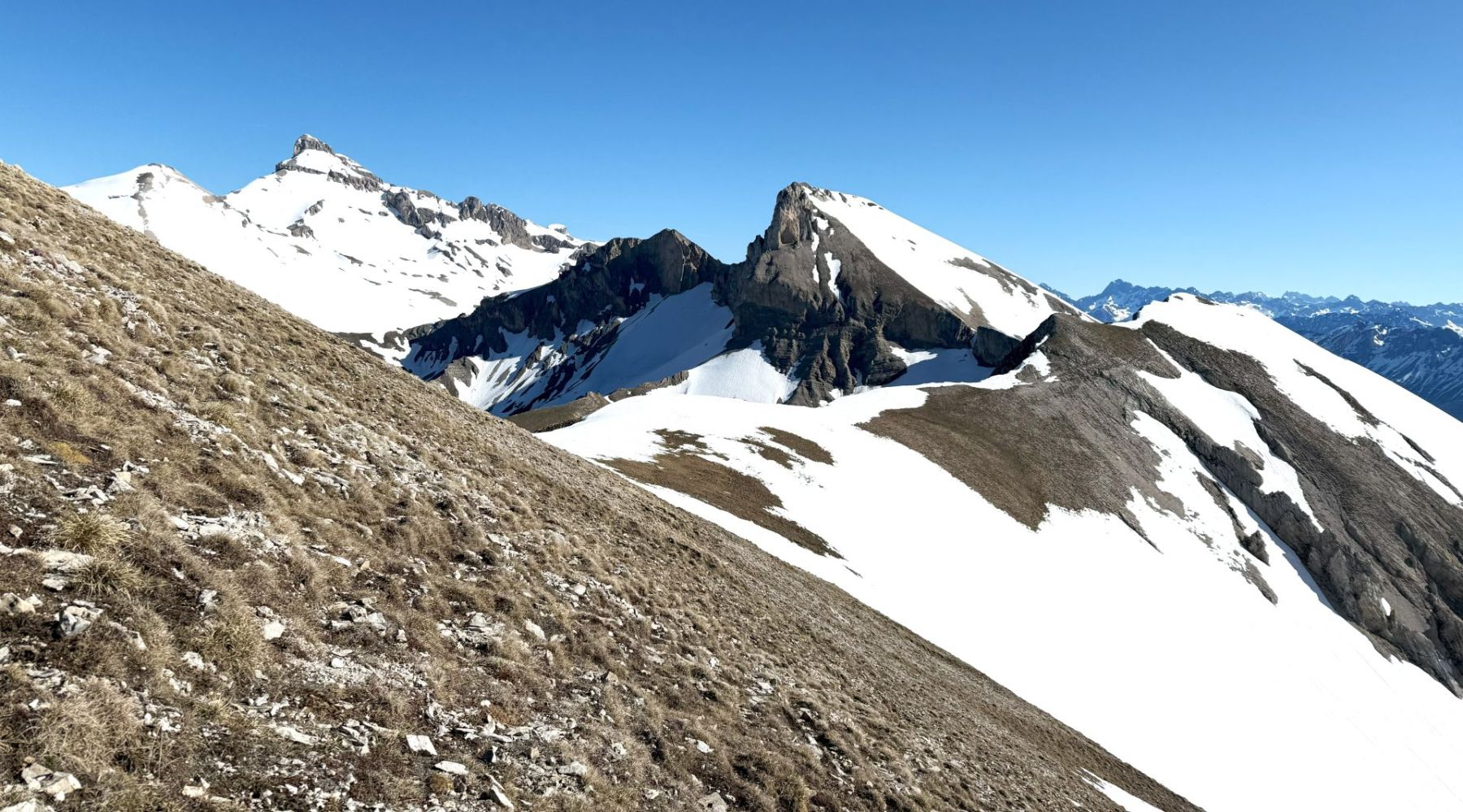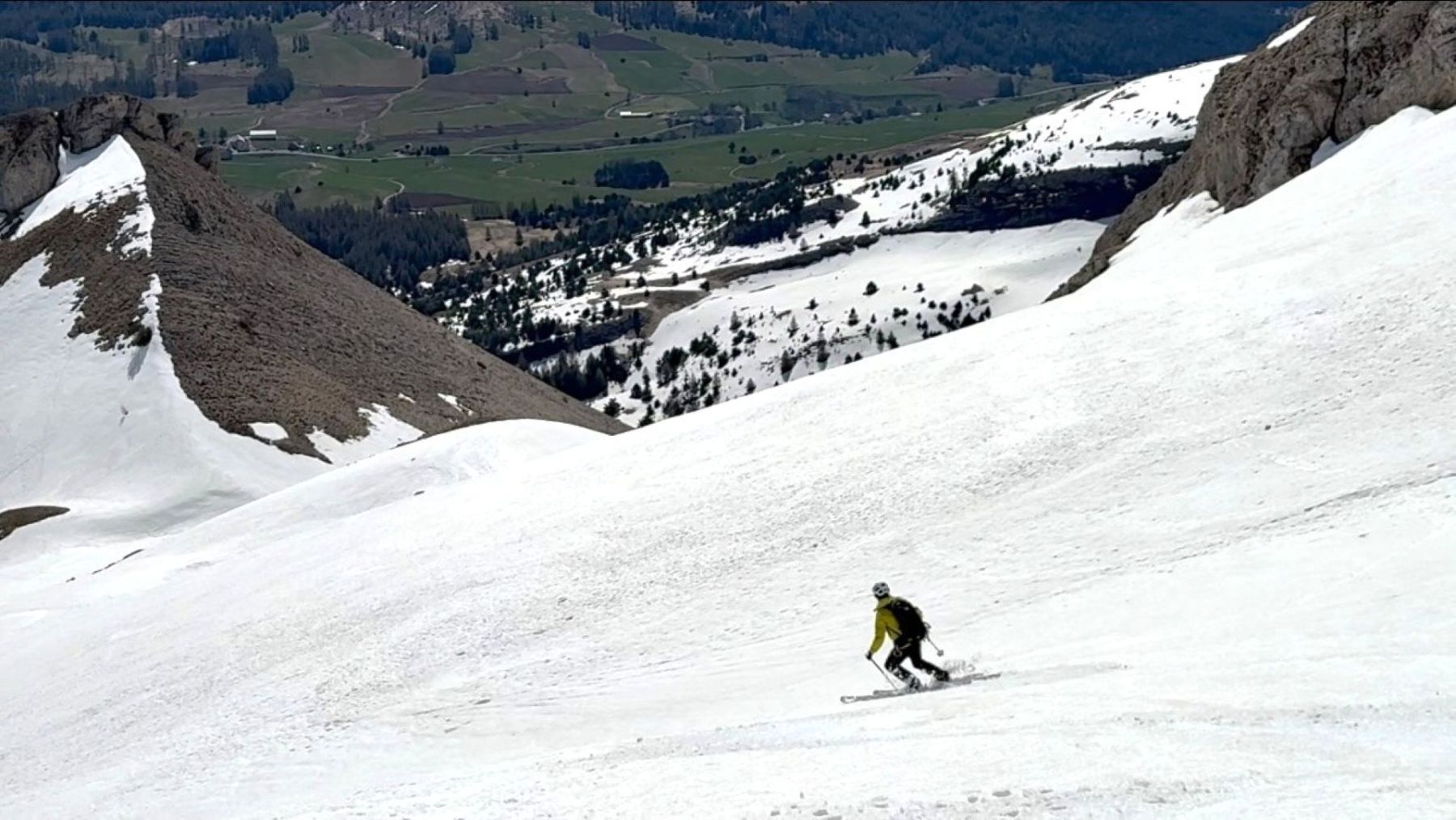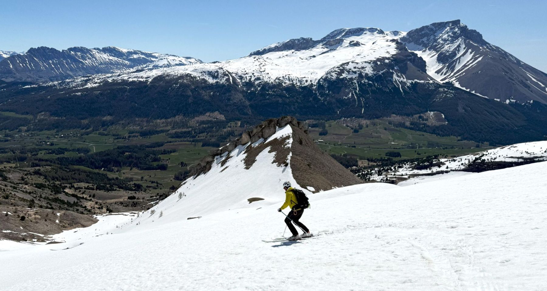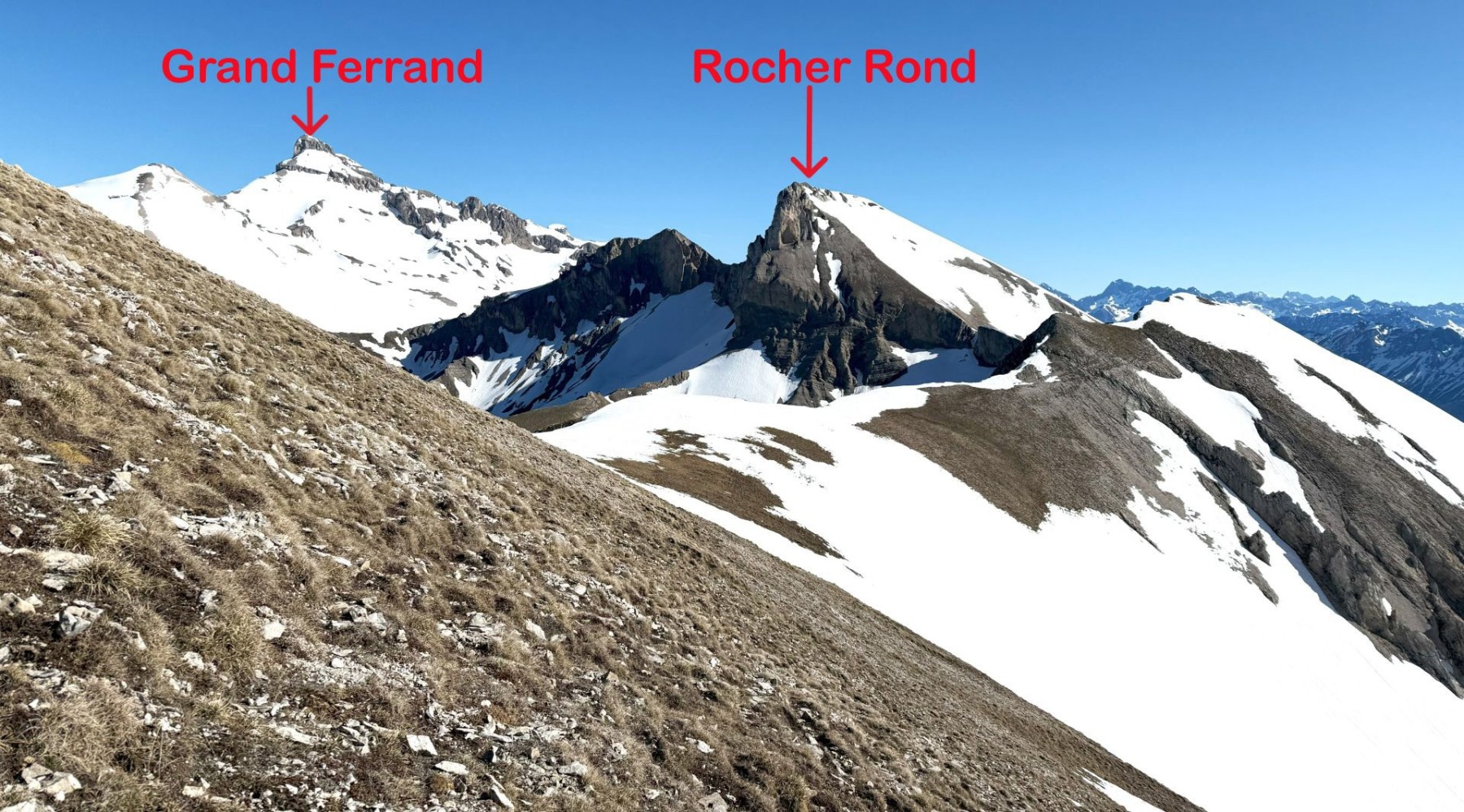 Comme souvent dans ce fabuleux petit Massif du Dévoluy, l’arrivée au sommet est magique avec la présence toute proche de rocs, de pics et de pentes qui, ici, plongent littéralement sur la région du Trièves !