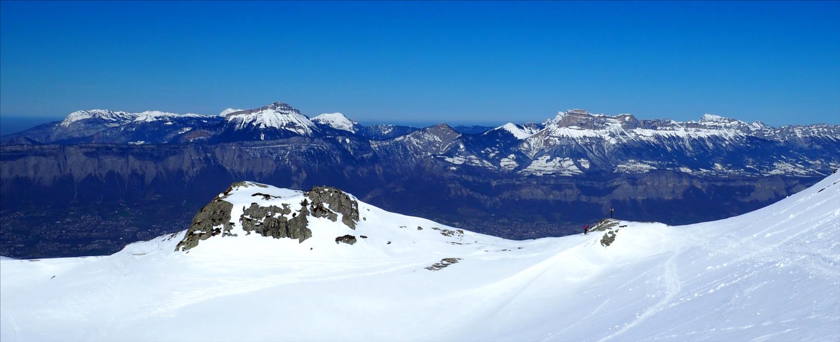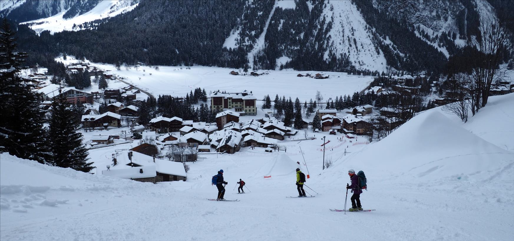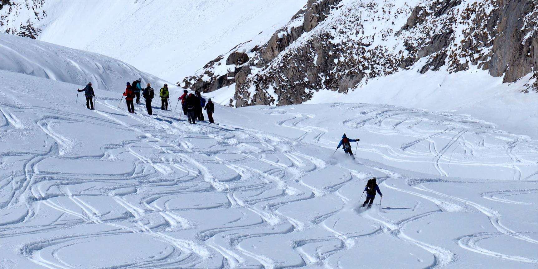 Retour tous ensemble à la voiture par le Vallon Froid avec une neige excellente. Matthieu s’offre une petite variante en skiant la Pointe sud de la Crête d’Âne.